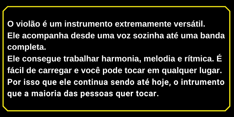 “Eu sempre amei escutar músicas mas nunca pensei que pudesse aprender a tocá-las até conhecer e começar a ter aulas no instituto. As aulas tem sempre uma vibe muito descontraída, o que deixa todo o processo de aprendizado muito mais leve e prazeroso. Não posso deixar de falar do meu professor André, que tem muita paciência comigo que estou aprendendo, além de sempre me incentivar a praticar mais.